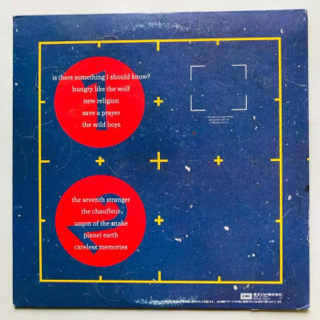 A1 Is There Something I Should Know? 4:37 A2 Hungry Like The Wolf 3:57 A3 New Religion 5:37 A4 Save A Prayer 6:09 A5 The Wild Boys 4:15 B1 The Seventh Stranger 5:10 B2 The Chauffeur 5:24 B3 Union Of The Snake 4:09 B4 Planet Earth 4:30 B5 Careless Memories 4:06